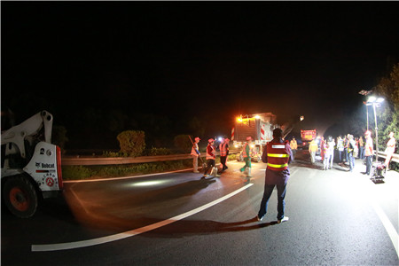 反復溝通,施工保質保進度。要在車流量極大的主干線上夜間順利施工,不僅對工程質量、進度負責,更要對安全保暢負責,不能有半點疏忽,不允許絲毫麻痹,而且涉及面極廣。不僅涉及工程部與施工監(jiān)理單位,更涉及到高速交警、路政及運營管理等多個部門,前期工程部協(xié)交警、營運部、監(jiān)理、施工等各相關單位就施工方案反復論證,一次次的討論與交流,計劃改了又改,從提前發(fā)布公告到路口設立標志,從預警車輛安排到分流時間節(jié)點,從搶險預案到應急小分隊建立,路面的反復測量,綠化養(yǎng)護的同期推進.....千頭萬緒,在于每一個細節(jié)的反復論證。一直到11號下午,確定了最合理有效的交通組織方案,施工前的安全和技術方面有了最后的交底,器械設備、材料、人員班組配備等一一清點得到最終確認。