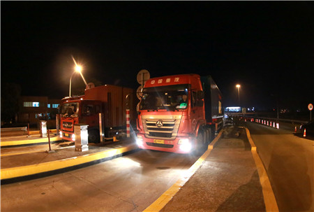 臺州南、溫嶺西收費所,分流9點開始,由于夜間通行貨車居多,每輛需計重收費,且夾雜綠農車,情況復雜,分流1個小時后出口車道已排成車燈長龍,壓力巨大。“路口協(xié)警一定要守住第一道防線,不能讓任何車輛進入!”富有經驗的所長王益民已在車道上與交通協(xié)管員一起指揮疏導交通了。從晚上10點到凌晨6點,持續(xù)奮戰(zhàn)8個小時,在有限的具有稱重能力車道的情況下,臺州南、溫嶺西共完成了5千多輛車的收費工作,流量相比平時增加一倍。