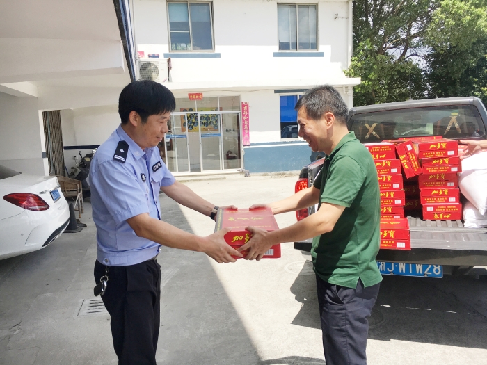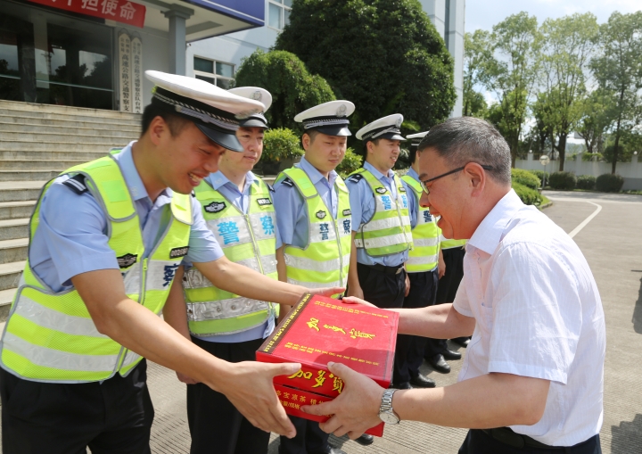 與此同時(shí),集團(tuán)總工程師江輝帶領(lǐng)工程部及收費(fèi)所相關(guān)人員到院橋派出所和交警隊(duì)開展“送清涼”活動。江輝代表臺州高速集團(tuán)對當(dāng)?shù)嘏沙鏊徒痪?duì)的履職盡責(zé)、通力協(xié)作表示衷心感謝,并叮囑他們在高溫天氣要做好防暑降溫工作。